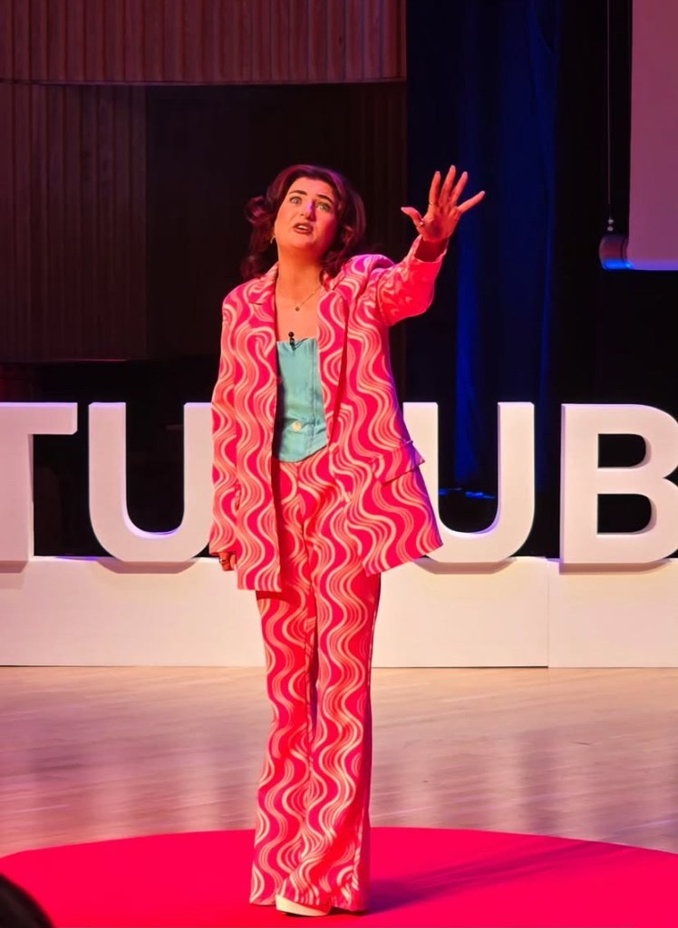 Dev Skehan, based in Ireland, is an adventurous lifestyle content creator and actor. She gained popularity by producing authentic, fun-loving, and creative content. Dev captivated the stage with her stylish outfit and genuine presence. Her words wove a beautiful tale of a girl living in the moment, embracing her true self, accepting her vulnerabilities, and appreciating the world around her. She conveyed a powerful message: live in the present, be your authentic self, take care of yourself, and show kindness to others.